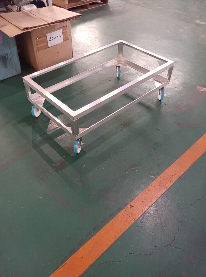 「今使っている台車が使いづらい」「既製品ではサイズが合わない」といったお悩みに合わせて、アルミ素材の特性を活かしたオーダーメイド製作にも対応いたします。